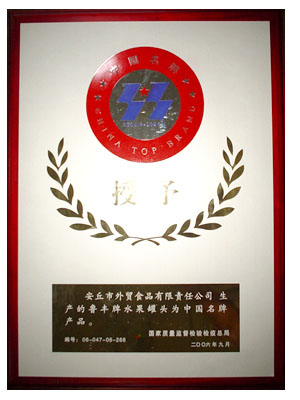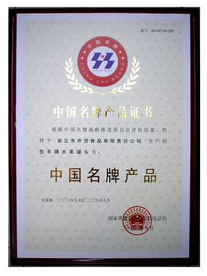 公司生产的"鲁丰"牌水果罐头荣获"中国名牌"产品!