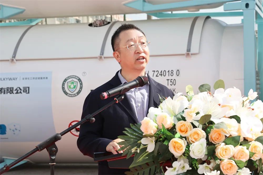 金秋時(shí)節(jié),丹桂飄香,在11月第一個(gè)秋高氣爽的日子里,中集環(huán)科迎來了一批尊貴的客人——中國化工倉儲(chǔ)、物流的領(lǐng)軍企業(yè)密爾克衛(wèi)供應(yīng)鏈服務(wù)有限公司董事長陳銀河、大金氟化工(中國)有限公司總經(jīng)理仲村清人等一行,他們與中集環(huán)科季國祥總經(jīng)理共同見證了密爾克衛(wèi)和大金氟化工首批氣體罐下線的激動(dòng)時(shí)刻。