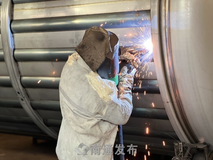 1日,記者走進(jìn)中集安瑞環(huán)科技股份有限公司(以下簡稱“中集環(huán)科”)生產(chǎn)車間,切身感受一線職工在高溫酷暑季節(jié)的作業(yè)環(huán)境。公司訂單飽滿,生產(chǎn)線馬力全開,工作人員有條不紊地忙碌著。令人印象頗深的是,公司自動化生產(chǎn)線和裝備的投入使用,極大改善了員工的作業(yè)環(huán)境,減輕了人員勞動強(qiáng)度,這也是中集環(huán)科發(fā)展新質(zhì)生產(chǎn)力的生動實踐。早上6點,公司標(biāo)罐車間十字焊接工李忠付開始今天的工作,中午12點便可下班。今年開始,公司明文規(guī)定要錯開高溫時間段生產(chǎn),保障員工在高溫天氣下的安全與健康。“當(dāng)氣溫達(dá)到37攝氏度以上,我們下午都是不上班的?!?007年加入中集環(huán)科,李忠付已經(jīng)是一名老師傅,只見他麻利地穿好牛皮防護(hù)服、防護(hù)手套,戴上焊工防護(hù)面罩后,還會把提供涼氣的“空調(diào)衣”準(zhǔn)備好,一系列操作行云流水,他開始將加熱管和加強(qiáng)圈陸續(xù)焊接到罐體上。
