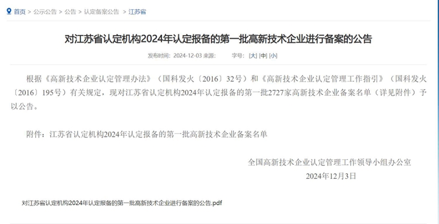 12月3日,全國(guó)高新技術(shù)企業(yè)認(rèn)定管理工作領(lǐng)導(dǎo)小組辦公室正式公告了江蘇省2024年認(rèn)定報(bào)備的第一批高新技術(shù)企業(yè)備案名單,中集安瑞環(huán)科技股份有限公司(以下簡(jiǎn)稱“中集環(huán)科”)憑借其在技術(shù)創(chuàng)新、知識(shí)產(chǎn)權(quán)、產(chǎn)品研發(fā)及轉(zhuǎn)化等方面的卓越表現(xiàn),再次成功獲得國(guó)家高新技術(shù)企業(yè)資質(zhì)認(rèn)定,證書編號(hào)為GR202432000848。